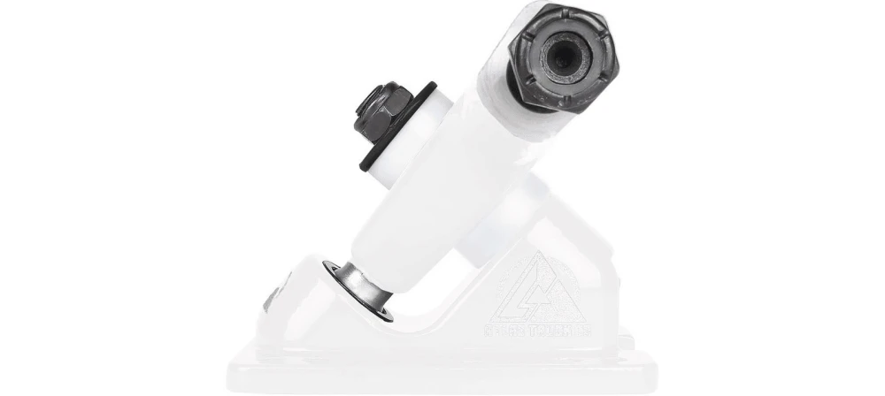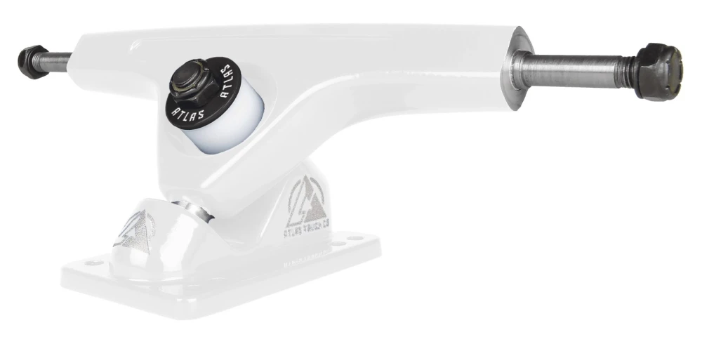 Die ATLAS TRUCKS sind die neuen Carving Trucks auf dem deutschen Markt. Gebaut um die das Surffeeling auf die Straße zuholen. Das massive Kugel-Gelenk erlaubt den Hänger einem vollen uneingeschränkten Bewegungsumfang und lindert Pivot verschleiß. Der Achsstift ist von am Hänger für ein kleines Stück 10mm geht aber nach 2mm auf 8mm runter, bietet eine extrem steife & dauerhafte Achse mit dem zusätzlichen Vorteil eines integrierten Speed-Ring. Die maßgeschneiderte kegeliger Kingpin sitzt in einer bearbeitete Grundplatte bietet eine einzigartige, bequeme Passform. Sogar der Pivot-Cup bietet nächste Level Funktionen wie Gewinde Luftspalt zur einfachen Entnahme und Wartung.
