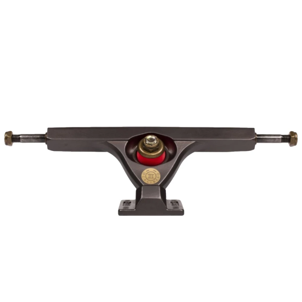 Mit der GIII hat Caliber eine richtig schöne und vielseitige raked Achse auf den Markt gebracht. Der Rake sorgt dafür, dass das Fahren besonders bei niedrigen Geschwindigkeiten super cruisy. Damit eignet er sich besonders fürs Freeriden, Freestylen und Dancen. Wenn du den Hanger umdrehst, hast du plötzlich eine deutlich stabilere Achse, mit der du als Einsteiger*in, Dowhill- Fan, oder Freerider*in deinen Spaß haben kannst. Die Caliber Truck ist durch ihre 50° gerichtete Baseplatte eine schöne stabile 184mm Longboardachse. Also ran damit an dein Board und los geht das Rollen.