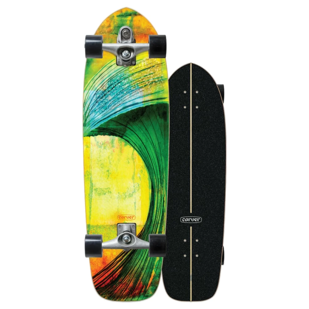 Hier kommt das Greenroom Surfskate mit bunter Wellenkunst von Ryan Kleiner! Das mittelgroße Retro-Template bietet viel Fläche für stabiles Carven und ist perfekt zum cruisen und pushen durch deine Straßen! Es wird vormontiert geliefert, also einfach auspacken und raus mit dir!