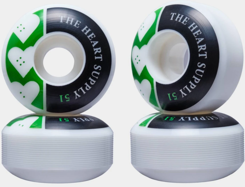 The Heart Supply Squad Wheels Grün versprechen viel Herz beim Rollen. Die perfekte 51mm Rolle für den Skatepark.