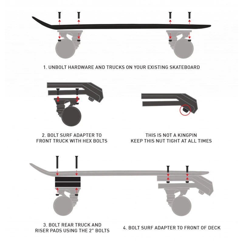 Klein, kompakt und ästhetisch. Das ist der Waterborne Surfskate Achsadapter. Dank der Kompakten Bauweise ist er leicht und agil. Mache dein Longbboard im Handumdrehen zu einem Surfskate. Schraube dafür einfach den Achsadapter unter deine bisherige Achse und los geht’s.