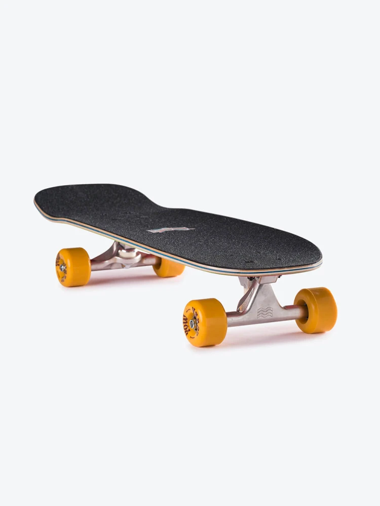 Das neue Yow Pocket Rem läutet die neue Ära der Yow Surfskate Cruiser ein. Kompakter Shape für die Hosentasche trifft auf eine agile Surfskateachse. Das Board ist mit seinen 26.5″ schön kompakt, hat eine leichte Concave und ein feines Kicktail. Es fühlt sich sowohl auf der Straße als auch im Skatepark super wohl. Ausgestattet mit der neuen und patentierten Yow Legasee Achse sind enge Turns und easy pumping kein Problem.